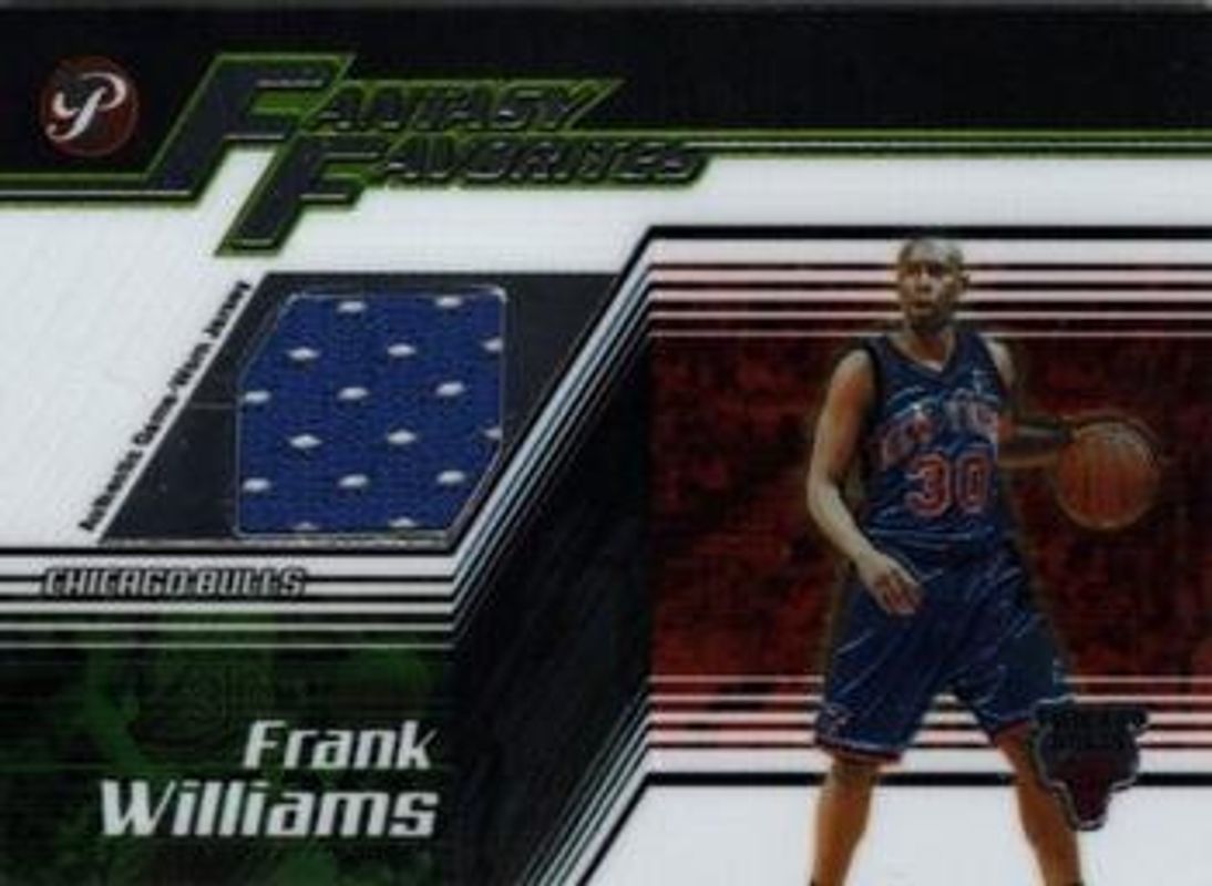 Frank Williams' Basketball cards are available in at least 15 sets. Frank Williams' biggest 7-day price movers are 2004 Topps Pristine #FF-FW Fantasy Favorites, 2004 Topps Pristine #FF-FW Fantasy Favorites Refractor /25, and 2004 Topps Total #238 Silver.