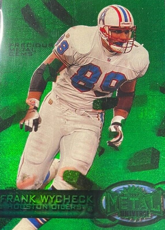 Frank Wycheck's Football cards are available in at least 19 sets. Frank Wycheck's biggest 7-day price movers are 1997 Metal Universe #120 Precious Metal Gems Green /15, 1999 Donruss #134 Base, and 1999 Donruss #134 Stat Line Career /223.