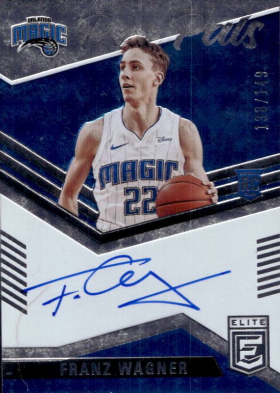 Franz Wagner's Basketball cards are available in at least 108 sets. Franz Wagner's biggest 7-day price movers are 2021 Prizm #23 Emergent - Silver, 2021 Optic #185 Holo, and 2021 Elite #PP-FWA Pen Pals /149.