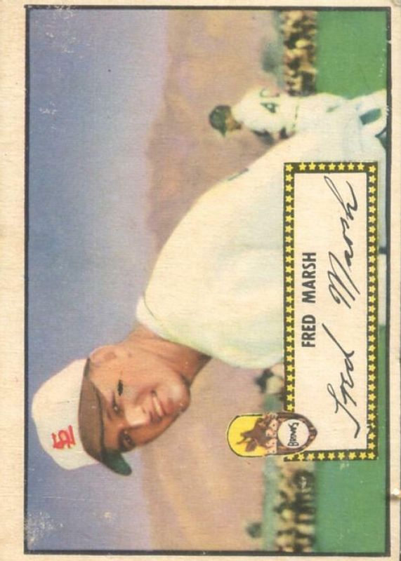 Fred Marsh's Baseball cards are available in at least 5 sets. Fred Marsh's biggest 7-day price movers are 1952 Topps #8 Base, 1952 Topps #8 Black Back, and 1954 Topps #218 Base.