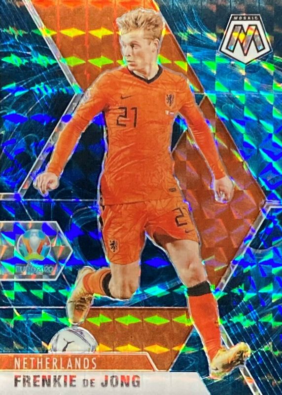 Frenkie de Jong's Soccer cards are available in at least 115 sets. Frenkie de Jong's biggest 7-day price movers are 2020 Mosaic Euro #150 Genesis /(SSP), 2023 Select La Liga #SS-FDJ Select Swatches Black /1, and 2023 Select La Liga #202 White Sparkle.