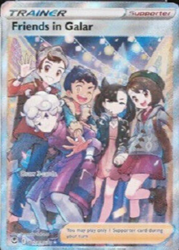 Friends in Galar's Pokemon cards are available in at least 2 sets. Friends in Galar's biggest 7-day price movers are 2022 Sword & Shield: Silver Tempest #TG23/TG30 Trainer Gallery, 2021 Japanese Sword & Shield: VMAX Climax #258/184 Super Rare (Full Art), and 2021 Japanese Sword & Shield: VMAX Climax #258 Holo (Full Art).
