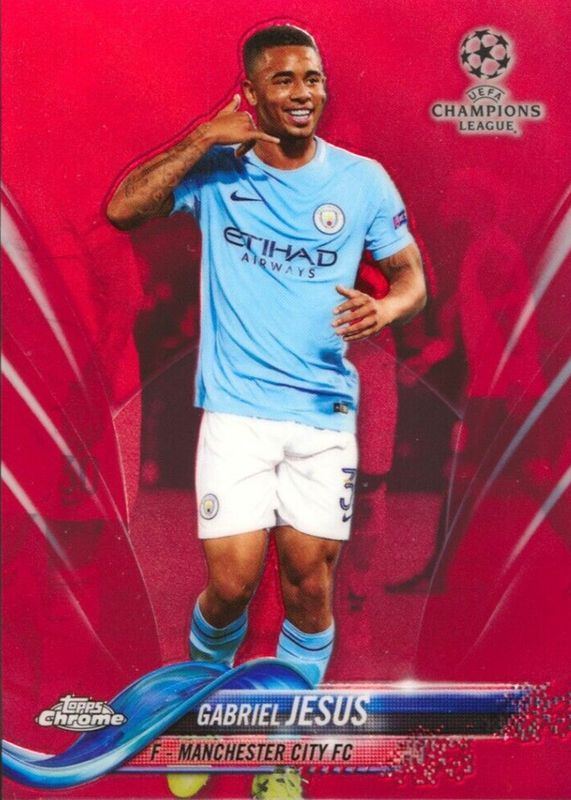 Gabriel Jesus' Soccer cards are available in at least 115 sets. Gabriel Jesus' biggest 7-day price movers are 2017 Topps Chrome UEFA Champions League #8 Red Refractor /10, 2017 Topps Chrome UEFA Champions League #8 Gold Refractor /50, and 2017 Topps Chrome UEFA Champions League #8 Refractor.
