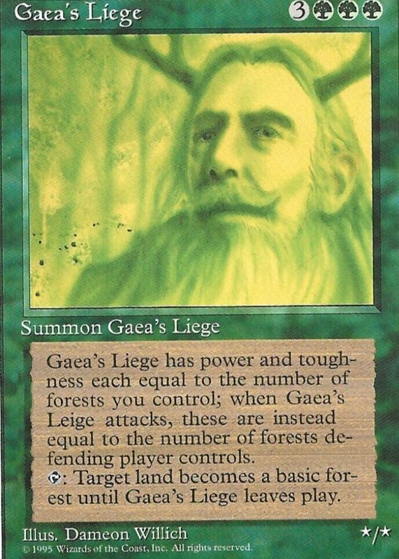 Gaea's Liege's Magic: The Gathering cards are available in at least 2 sets. Gaea's Liege's biggest 7-day price movers are 1995 Fourth Edition Base, and 1993 Alpha Edition Base.