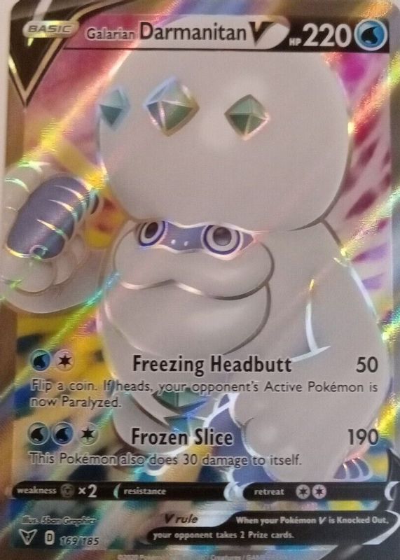 Galarian Darmanitan V's Pokemon cards are available in at least 2 sets. Galarian Darmanitan V's biggest 7-day price movers are 2020 Sword & Shield: Vivid Voltage #036/185 Base, 2020 Japanese Sword & Shield: Amazing Volt Tackle #103/100 Super Rare, and 2020 Japanese Sword & Shield: Amazing Volt Tackle #023/100 Double Rare.