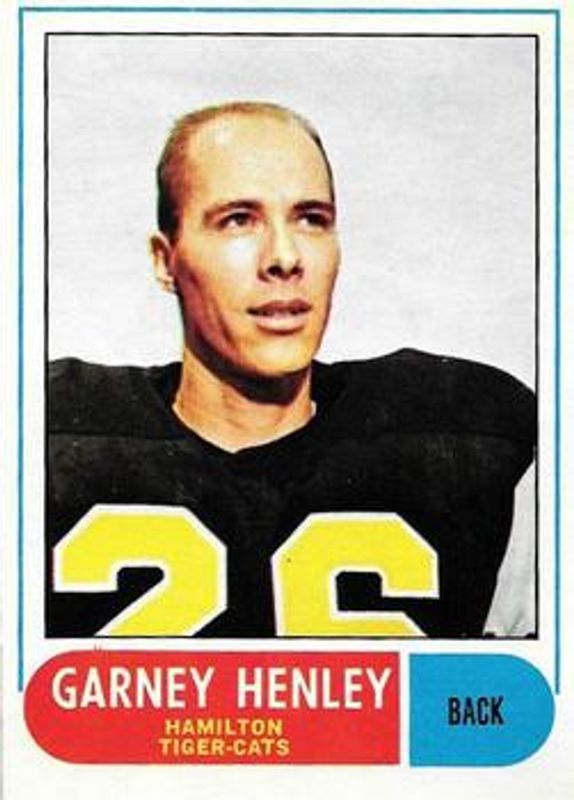Garney Henley's Football cards are available in at least 4 sets. Garney Henley's biggest 7-day price movers are 1968 O-Pee-Chee CFL #55 Base, 1970 O-Pee-Chee CFL #16 Base, and 1971 O-Pee-Chee CFL #65 Base.