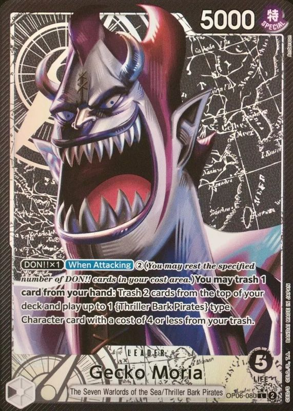 Gecko Moria's One Piece cards are available in at least 1 sets. Gecko Moria's biggest 7-day price movers are 2024 Wings of the Captain #OP06-080 Leader (Alternate Art), 2024 Wings of the Captain #OP06-086 Super Rare (Alternate Art), and 2024 Wings of the Captain #OP06-086 Super Rare.