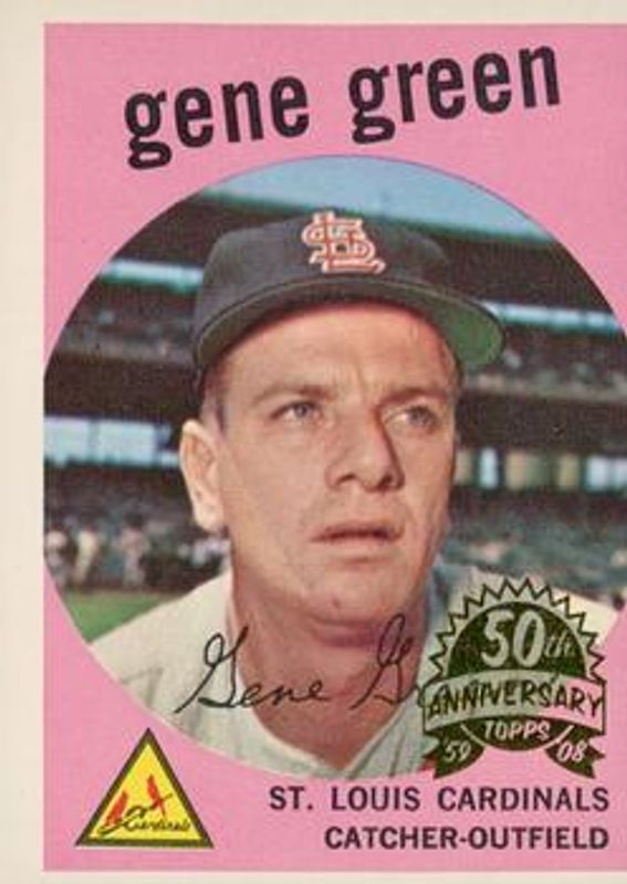 Gene Green's Baseball cards are available in at least 13 sets. Gene Green's biggest 7-day price movers are 2008 Topps Heritage #37 50th Anniversary Buybacks, 2009 Topps Heritage #269 50th Anniversary Buybacks, and 2010 Topps Heritage #206 50th Anniversary Buybacks.