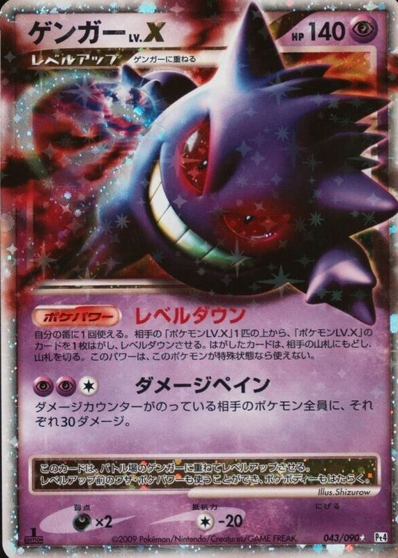 Gengar LV.X's Pokemon cards are available in at least 2 sets. Gengar LV.X's biggest 7-day price movers are 2009 Japanese Platinum: Advent of Arceus #043/090 Unlimited Holo, 2009 Japanese Platinum: Advent of Arceus #043/090 1st Edition Holo, and 2009 Platinum: Arceus #97/99 Holo.