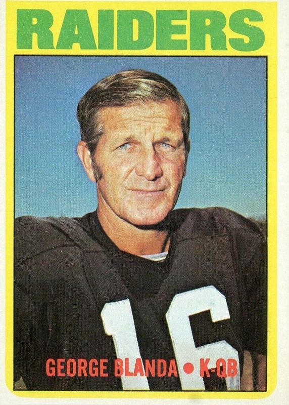 George Blanda's Football cards are available in at least 45 sets. George Blanda's biggest 7-day price movers are 1972 Topps #235 Base, 1972 Topps #348 In Action, and 1961 Topps #145 Base.