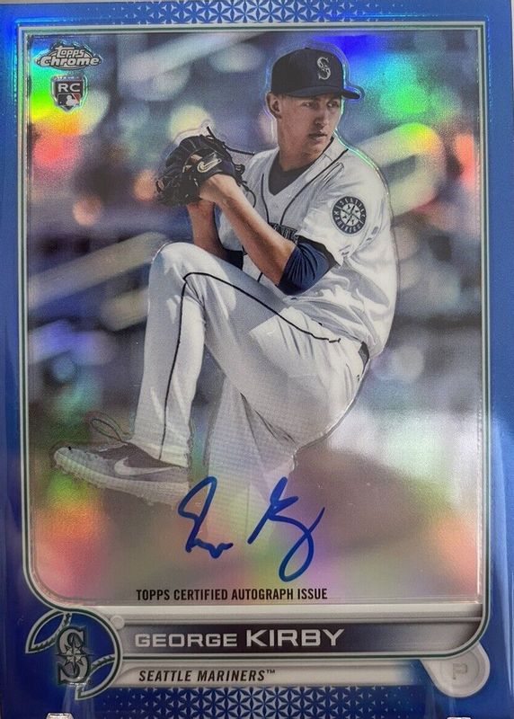 George Kirby's Baseball cards are available in at least 48 sets. George Kirby's biggest 7-day price movers are 2022 Topps Chrome #RA-GK Rookie Auto - Blue Refractor /150, 2022 Topps Chrome #RA-GK Rookie Auto - Gold Refractor /50, and 2024 Topps Heritage #ROA-GKI Real One Autographs.
