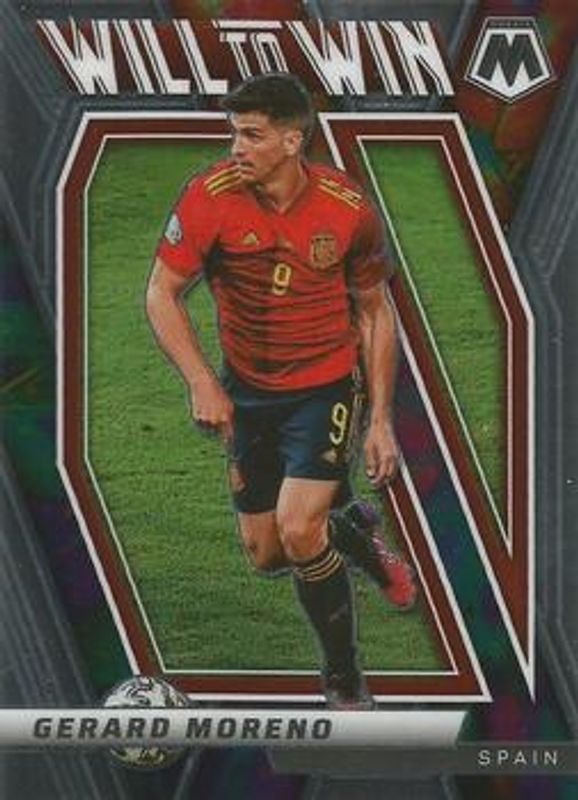 The biggest 30-day change Gerard Moreno cards are 2021 Mosaic Road to FIFA World Cup #38 Will to Win, 2021 Mosaic Road to FIFA World Cup #38 Will to Win - Gold Fluorescent /10, and 2021 Mosaic Road to FIFA World Cup #38 Will to Win - Orange Fluorescent.