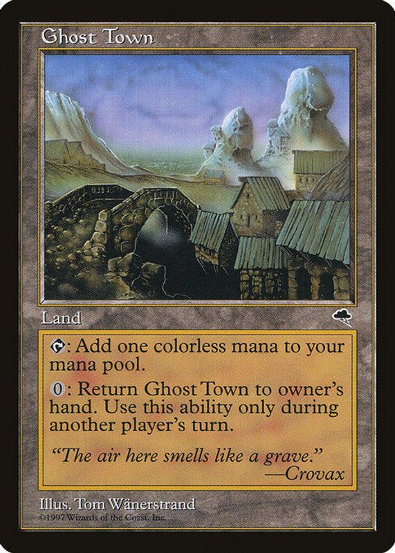 Ghost Town's Magic: The Gathering cards are available in at least 1 sets. Ghost Town's biggest 7-day price movers are 1997 Tempest Base.