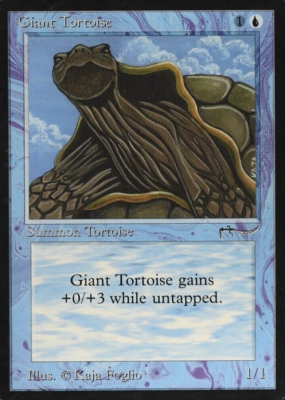 Giant Tortoise's Magic: The Gathering cards are available in at least 2 sets. Giant Tortoise's biggest 7-day price movers are 1993 Arabian Nights Base (Dark), 1993 Arabian Nights Base (Light), and 1995 Fourth Edition Base.