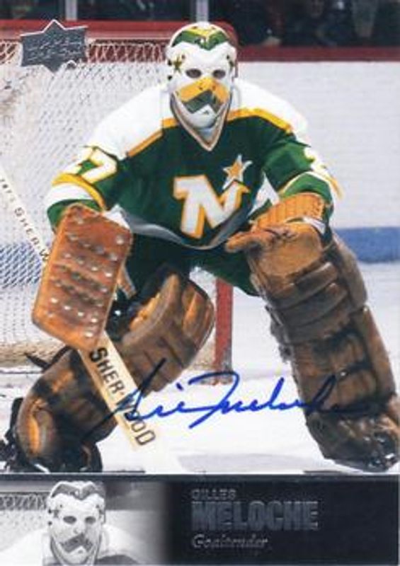 Gilles Meloche's Hockey cards are available in at least 27 sets. Gilles Meloche's biggest 7-day price movers are 2020 SP Signature Edition Legends #AL-205 1997 Ultimate Legends The Alumni Signatures, 2020 SP Signature Edition Legends #118 Base /99, and 2020 SP Signature Edition Legends #C-60 UD Canvas Legends Autographs.