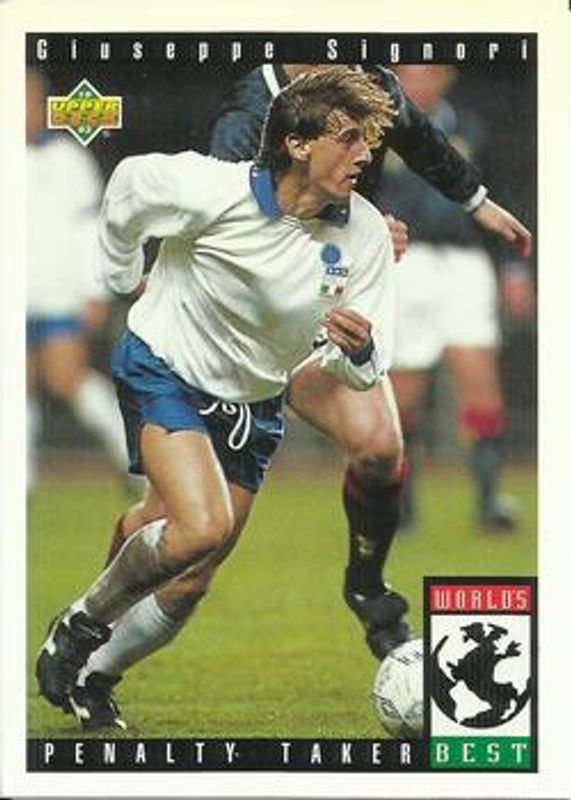 Giuseppe Signori's Soccer cards are available in at least 5 sets. Giuseppe Signori's biggest 7-day price movers are 1993 Upper Deck World Cup Preview (English/Spanish) #111 Base, 1993 Upper Deck World Cup Preview (English/German) #93 Base, and 1993 Upper Deck World Cup Preview (Spanish/Italian) #93 Base.