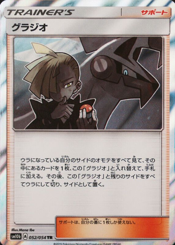 Gladion's Pokemon cards are available in at least 4 sets. Gladion's biggest 7-day price movers are 2019 Japanese Sun & Moon: Sky Legend #052/054 Trainer Rare, 2017 Sun & Moon: Crimson Invasion #109/111 Holo (Full Art), and 2017 Japanese Sun & Moon: Awakened Heroes #055/050 Super Rare (Full Art).
