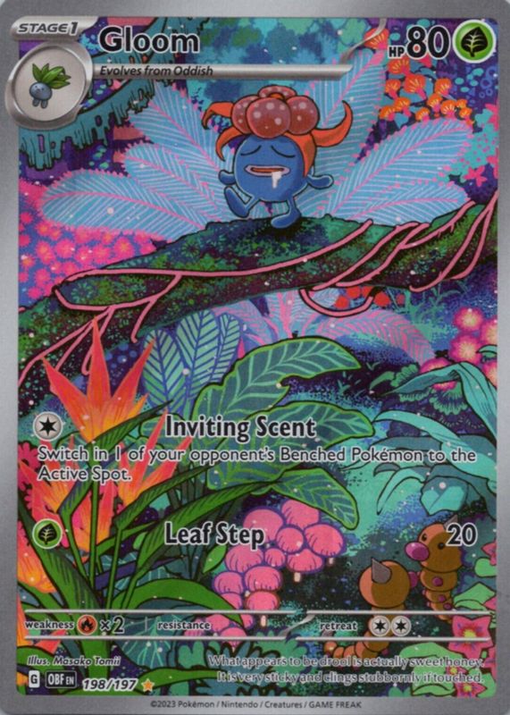 Gloom's Pokemon cards are available in at least 32 sets. Gloom's biggest 7-day price movers are 2023 Japanese Scarlet & Violet: Ruler of the Black Flame #109/108 Art Rare, 1999 Jungle #37/64 1st Edition, and 2005 EX: Unseen Forces #058/115 Reverse Holo.