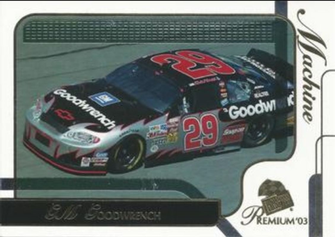 GM Goodwrench's Racing cards are available in at least 6 sets. GM Goodwrench's biggest 7-day price movers are 2003 Press Pass Premium #38 Base, 2003 Press Pass Premium #P38 Red Reflectors, and 2000 Press Pass #OC-7 Oil Can.