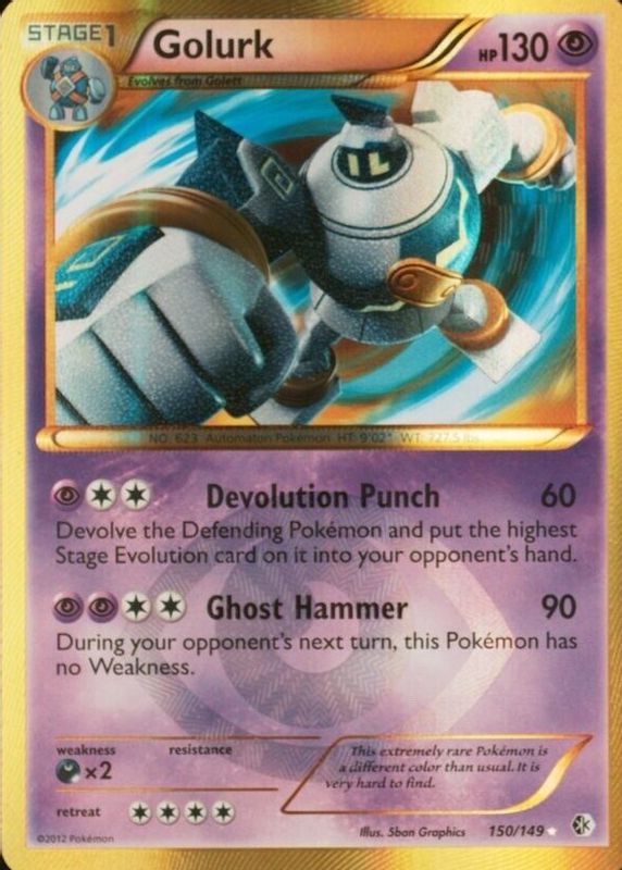 Golurk's Pokemon cards are available in at least 16 sets. Golurk's biggest 7-day price movers are 2025 Scarlet & Violet: Black Bolt #123/086 Illustration Rare, 2012 Black & White: Boundaries Crossed #150/149 Holo (Secret), and 2012 Japanese Black & White: Freeze Bolt #064/059 1st Edition Holo (Secret).