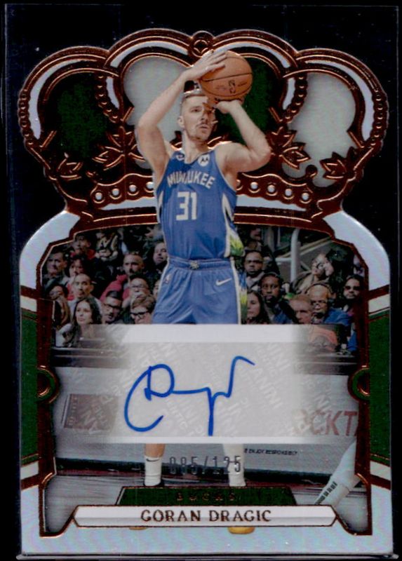 The biggest 30-day change Goran Dragic cards are 2023 Crown Royale #CA-GDM Crown Autographs /99, 2023 Crown Royale #CA-GDM Crown Autographs - Blue /75, and 2023 Crown Royale #CA-GDM Crown Autographs - International Gold /8.