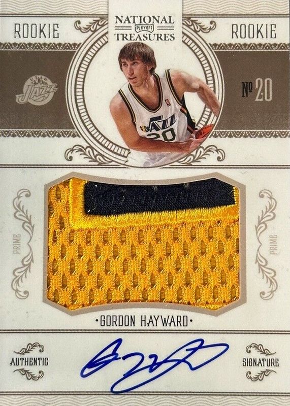 Gordon Hayward's Basketball cards are available in at least 206 sets. Gordon Hayward's biggest 7-day price movers are 2010 National Treasures #209 Rookie Patch Auto /99, 2012 Innovation #85 Stained Glass /(SSP), and 2010 Prestige #219 Base.