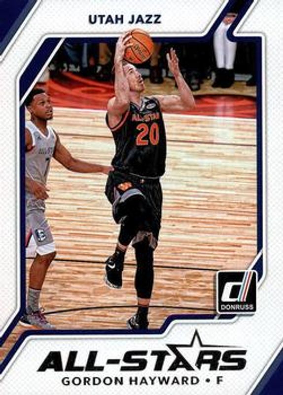 Gordon Hayward's Basketball cards are available in at least 201 sets. Gordon Hayward's biggest 7-day price movers are 2017 Donruss #12 All Stars, 2017 Donruss #12 All Stars - Press Proof Blue /125, and 2017 Donruss #12 All Stars - Press Proof.