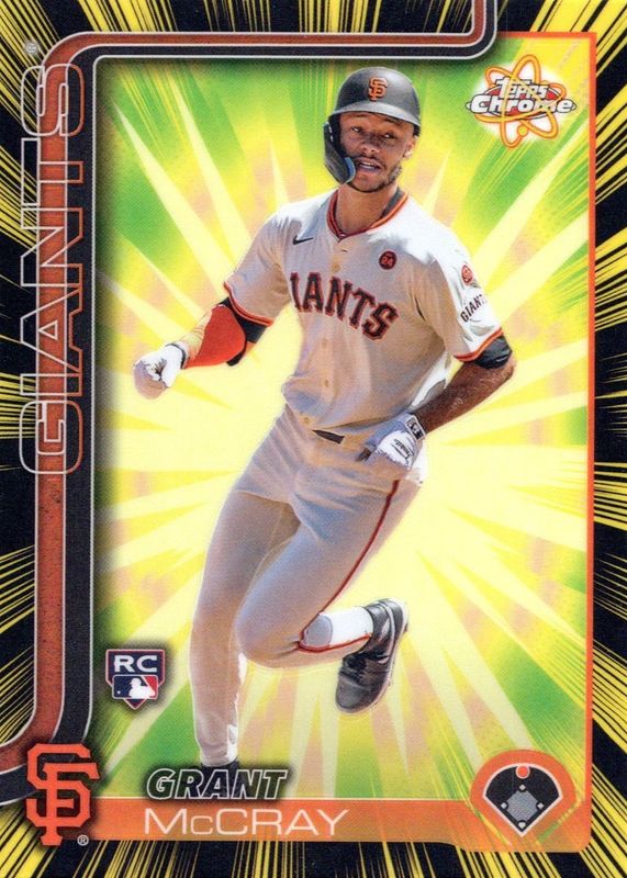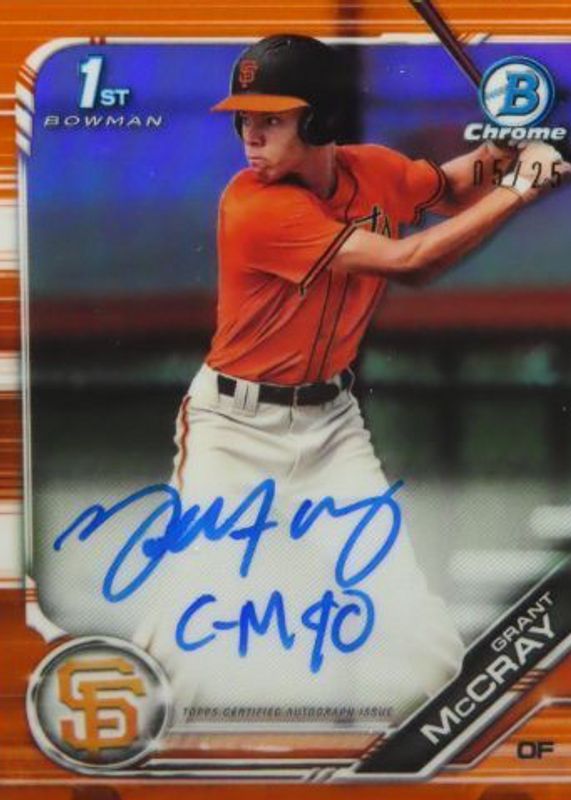 Grant McCray's Baseball cards are available in at least 14 sets. Grant McCray's biggest 7-day price movers are 2025 Topps Chrome #RR-17 Radiating Rookies /(SSP), 2019 Bowman Draft #CDA-GM Chrome DP Auto - Orange Refractor /25 (1st), and 2019 Bowman Draft #CDA-GM Chrome DP Auto - Red Refractor /5 (1st).