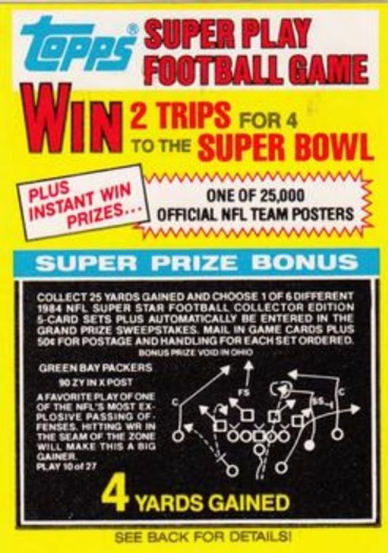 Green Bay Packers' Football cards are available in at least 5 sets. Green Bay Packers' biggest 7-day price movers are 1984 Topps #10 Super Play Game Cards, 1962 Topps #75 Base, and 1958 Topps #96 Base.