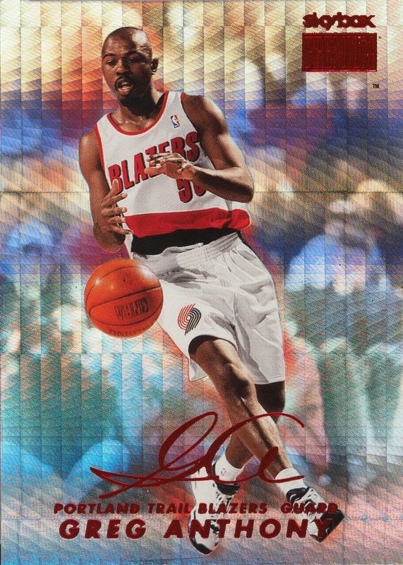 Greg Anthony's Basketball cards are available in at least 65 sets. Greg Anthony's biggest 7-day price movers are 1998 Skybox Premium #165 Star Rubies /50, 1997 Upper Deck NBA Stickers (European) #148 Base, and 2022 Recon #CFS-GGA Claim to Fame Signatures - Red /99.