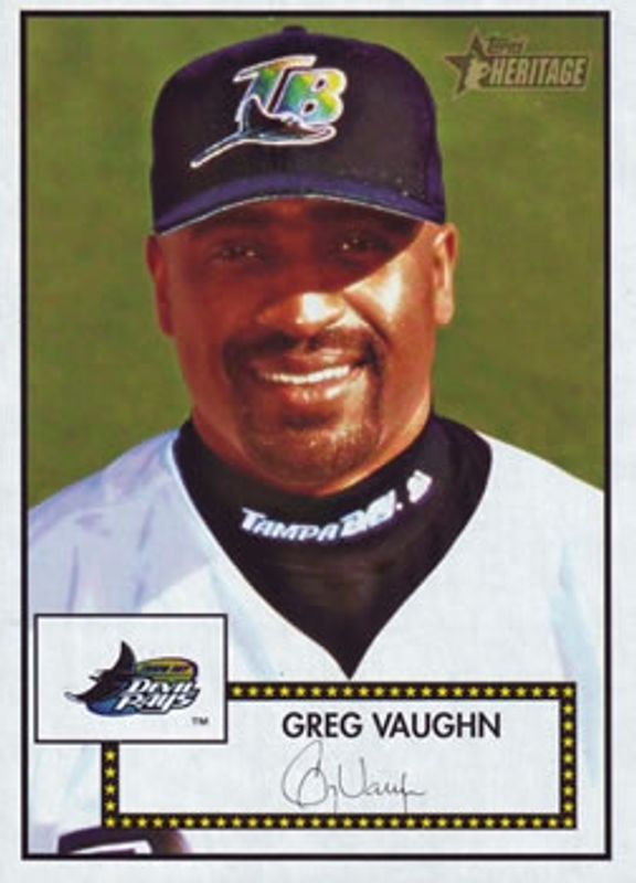 Greg Vaughn's Baseball cards are available in at least 81 sets. Greg Vaughn's biggest 7-day price movers are 2001 Topps Heritage #151 Base, 2002 Topps Heritage #70 Base, and 1997 Donruss Preferred #39 Base.