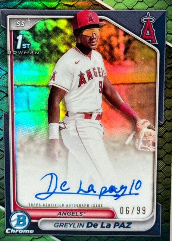Greylin De La Paz's Baseball cards are available in at least 1 sets. Greylin De La Paz's biggest 7-day price movers are 2024 Bowman Chrome #CPA-GD Prospect Auto - Green Refractor /99 (1st), 2024 Bowman Chrome #CPA-GD Prospect Auto - Red Wave Refractor /5 (1st), and 2024 Bowman Chrome #CPA-GD Prospect Auto - Mini-Diamond Refractor /100 (1st).