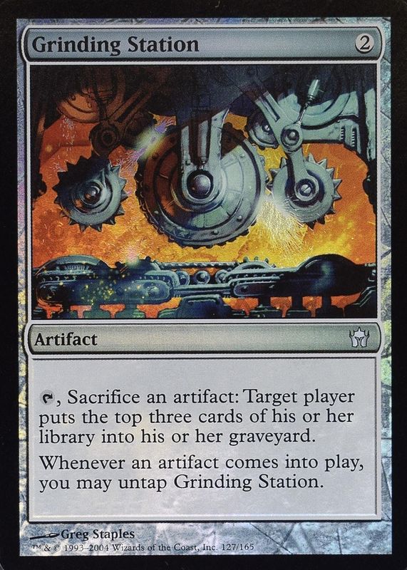 Grinding Station's Magic: The Gathering cards are available in at least 1 sets. Grinding Station's biggest 7-day price movers are 2004 Fifth Dawn #127 Foil, and 2004 Fifth Dawn #127 Base.