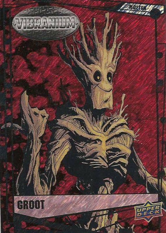 Groot's Marvel cards are available in at least 21 sets. Groot's biggest 7-day price movers are 2015 Upper Deck Marvel Vibranium #71 Molten Vibranium /299, 2015 Upper Deck Marvel Vibranium #71 Raw Vibranium, and 2015 Upper Deck Marvel Vibranium #71 Refined Vibranium /99.