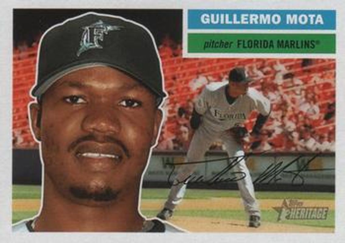 Guillermo Mota's Baseball cards are available in at least 6 sets. Guillermo Mota's biggest 7-day price movers are 2005 Topps Heritage #281 Base, 2002 Topps Total #131 Base, and 1999 Fleer Tradition Update #U-60 Base.