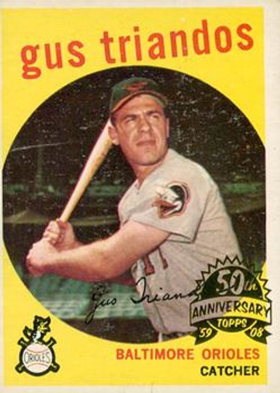 Gus Triandos' Baseball cards are available in at least 20 sets. Gus Triandos' biggest 7-day price movers are 2008 Topps Heritage #330 50th Anniversary Buybacks, 2009 Topps Heritage #60 50th Anniversary Buybacks, and 2010 Topps Heritage #106 Framed Buyback Stamps.