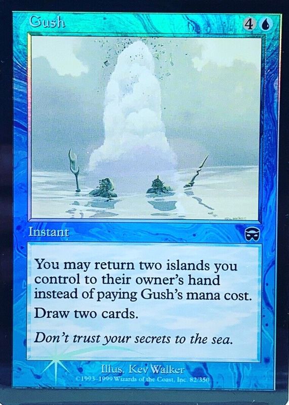 Gush's Magic: The Gathering cards are available in at least 1 sets. Gush's biggest 7-day price movers are 1999 Mercadian Masques #82 Foil.