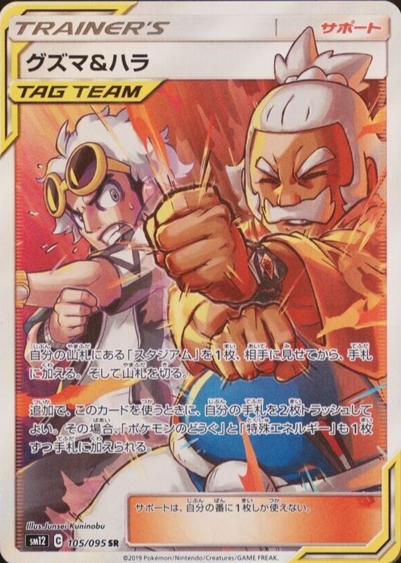 Guzma & Hala's Pokemon cards are available in at least 2 sets. Guzma & Hala's biggest 7-day price movers are 2019 Japanese Sun & Moon: Alter Genesis #105/095 Super Rare, 2019 Sun & Moon: Cosmic Eclipse #229/236 Holo (Full Art), and 2019 Japanese Sun & Moon: Alter Genesis #087/095 Base.