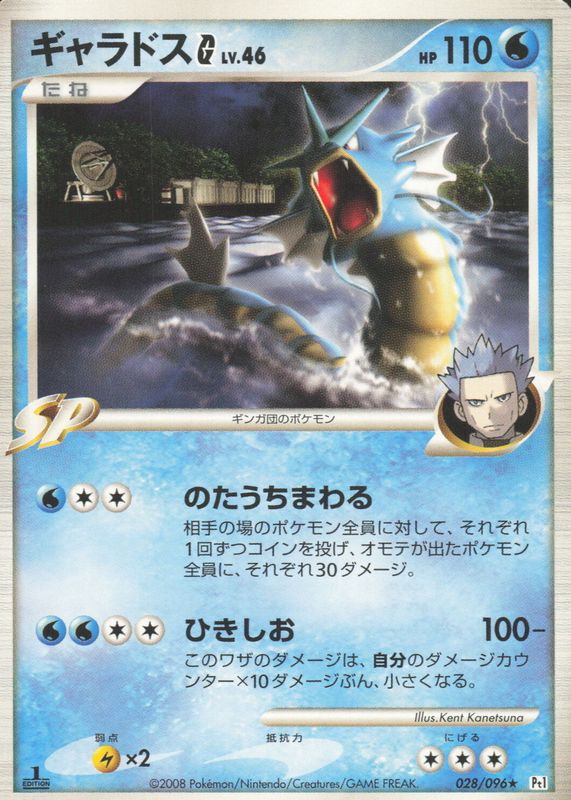 Gyarados G's Pokemon cards are available in at least 2 sets. Gyarados G's biggest 7-day price movers are 2008 Japanese Platinum: Galactic's Conquest #028/096 Unlimited, 2008 Japanese Platinum: Galactic's Conquest #028/096 1st Edition, and 2009 Platinum #030/127 Base.