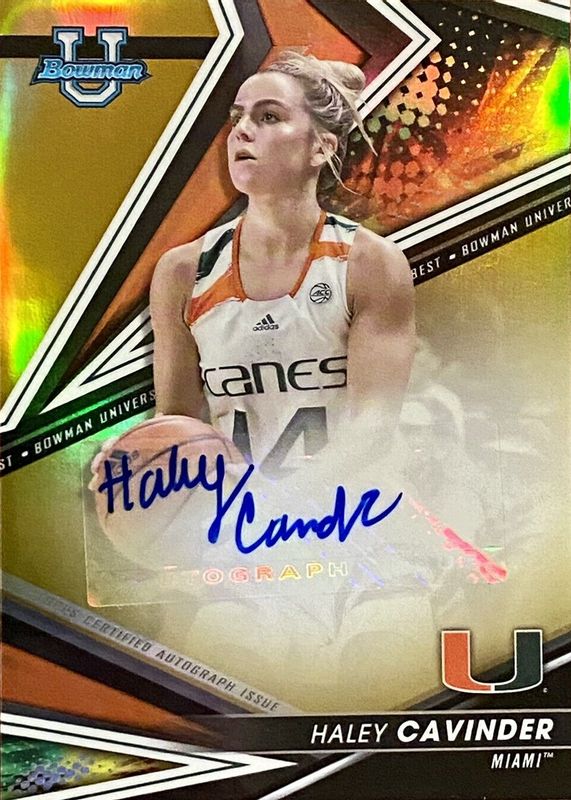 Haley Cavinder's Basketball cards are available in at least 1 sets. Haley Cavinder's biggest 7-day price movers are 2022 Bowman Best University #BOA-HYC Best of 2022 Autographs - Superfractor /1, 2022 Bowman Best University #BOA-HYC Best of 2022 Autographs - Refractor, and 2022 Bowman Best University #BOA-HYC Best of 2022 Autographs.