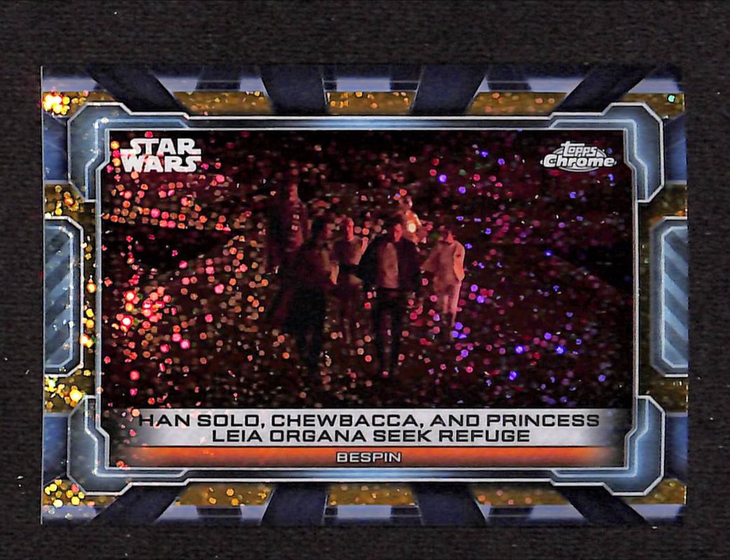 Han Solo and Chewbacca's Star Wars cards are available in at least 1 sets. Han Solo and Chewbacca's biggest 7-day price movers are 2024 Topps Star Wars Hyperspace #GE-10 Galactic Eras - Gold Galactic Dust Refractor /50, 2024 Topps Star Wars Hyperspace #GE-10 Galactic Eras - Red Hyperlanes Refractor /5, and 2024 Topps Star Wars Hyperspace #GE-10 Galactic Eras - Superfractor /1.