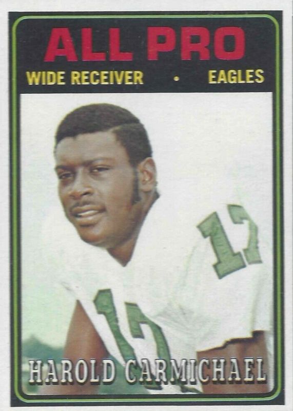 Harold Carmichael's Football cards are available in at least 21 sets. Harold Carmichael's biggest 7-day price movers are 1974 Topps #121 Base, 2016 Prizm #5 Draft Gems - Black Finite /1, and 2016 Prizm #5 Draft Gems - Green.