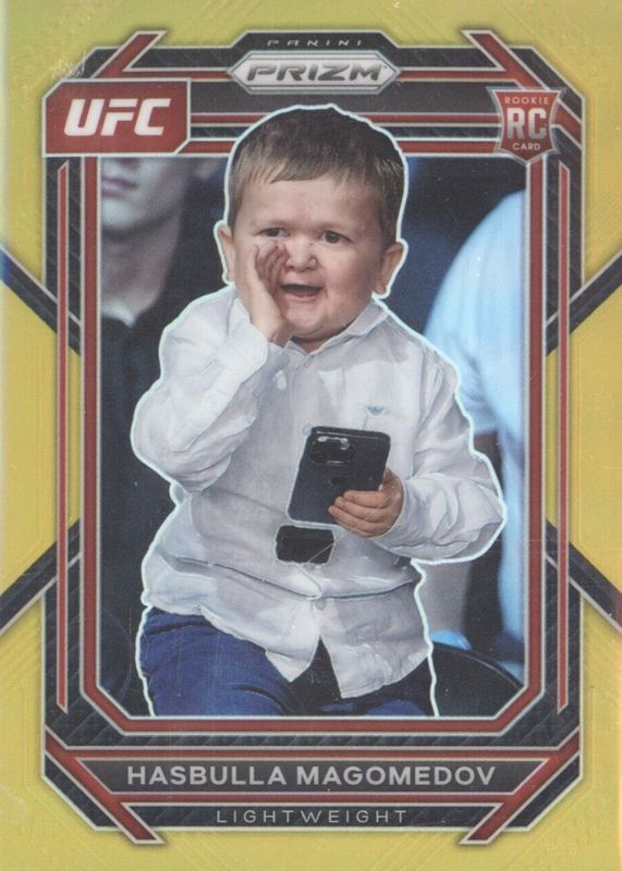 Hasbulla Magomedov's MMA cards are available in at least 2 sets. Hasbulla Magomedov's biggest 7-day price movers are 2023 Prizm UFC #200 Gold /10, 2023 Prizm UFC #200 Under Card, and 2023 Prizm UFC #200 Blue Shimmer /10.
