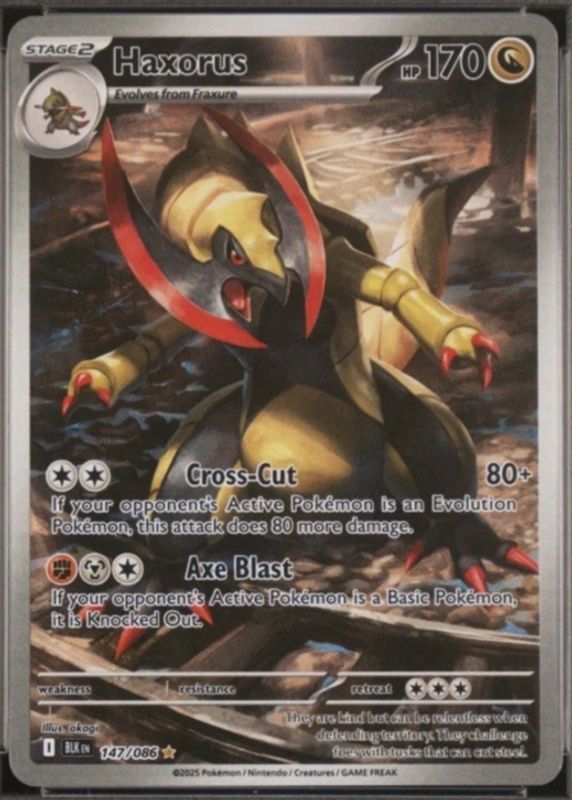 Haxorus' Pokemon cards are available in at least 13 sets. Haxorus' biggest 7-day price movers are 2025 Scarlet & Violet: Black Bolt #070/086 Poke Ball Reverse Holo, 2013 Japanese Black & White: Megalo Cannon #057/076 1st Edition Holo, and 2015 Japanese XY: Blue Shock #047/059 1st Edition Holo.