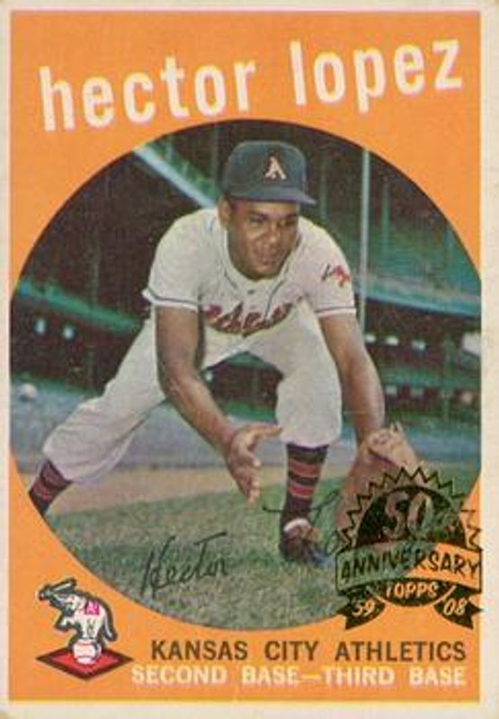 Hector Lopez's Baseball cards are available in at least 21 sets. Hector Lopez's biggest 7-day price movers are 2008 Topps Heritage #402 50th Anniversary Buybacks, 2009 Topps Heritage #163 50th Anniversary Buybacks, and 2010 Topps Heritage #28 50th Anniversary Buybacks.