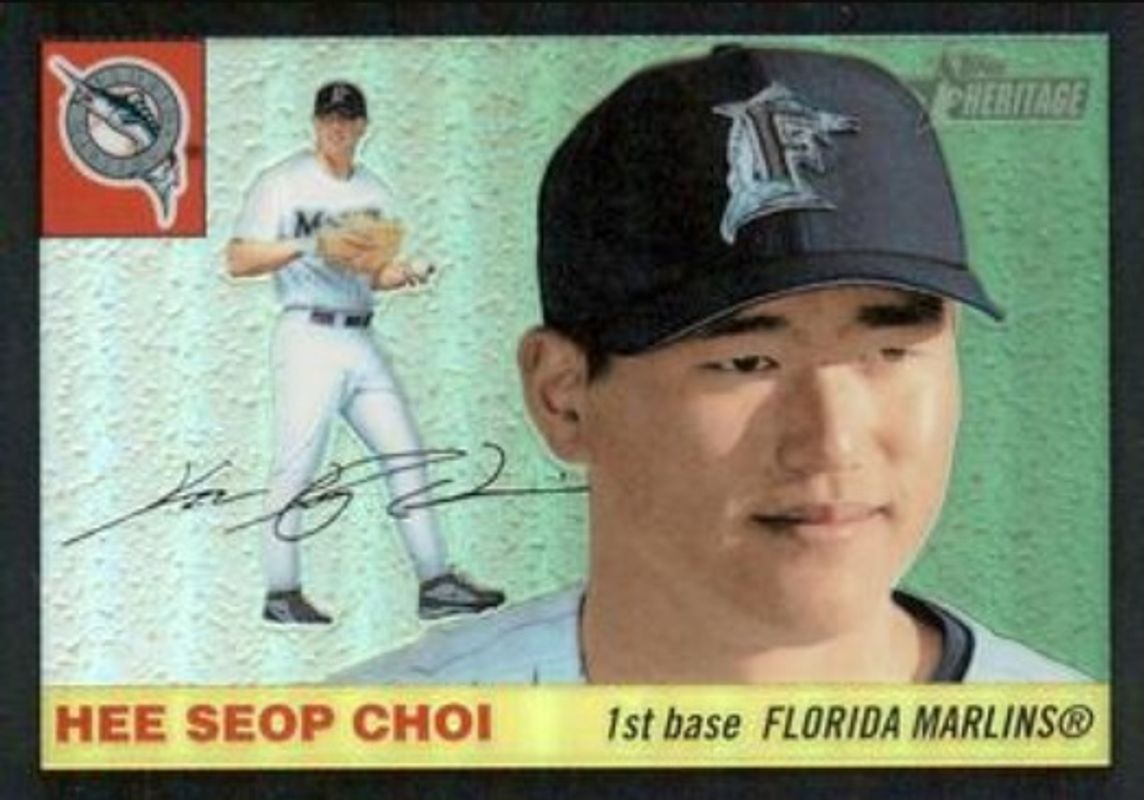 Hee Seop Choi's Baseball cards are available in at least 9 sets. Hee Seop Choi's biggest 7-day price movers are 2004 Topps Heritage #THC21 Chrome Black Refractor /55, 2004 Topps Heritage #THC21 Chrome Refractor /555, and 2004 Topps Heritage #THC21 Chrome /1955.