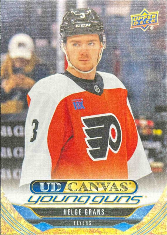 Helge Grans' Hockey cards are available in at least 2 sets. Helge Grans' biggest 7-day price movers are 2024 Upper Deck Extended Series #722 Young Guns Base, 2024 Upper Deck Extended Series #C358 UD Canvas, and 2024 Upper Deck Extended Series #722 Magenta Printing Plate /1.
