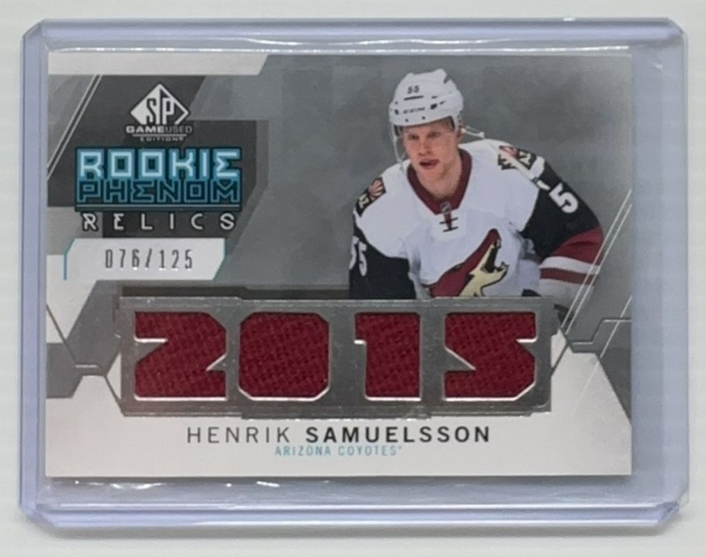 Henrik Samuelsson's Hockey cards are available in at least 10 sets. Henrik Samuelsson's biggest 7-day price movers are 2015 SP Game Used #RP-HS 2015 Rookie Phenom Relics /125, 2015 SP Game Used #116 Copper Jersey /399, and 2015 SP Game Used #116 Gold Spectrum Prime Jersey /99.