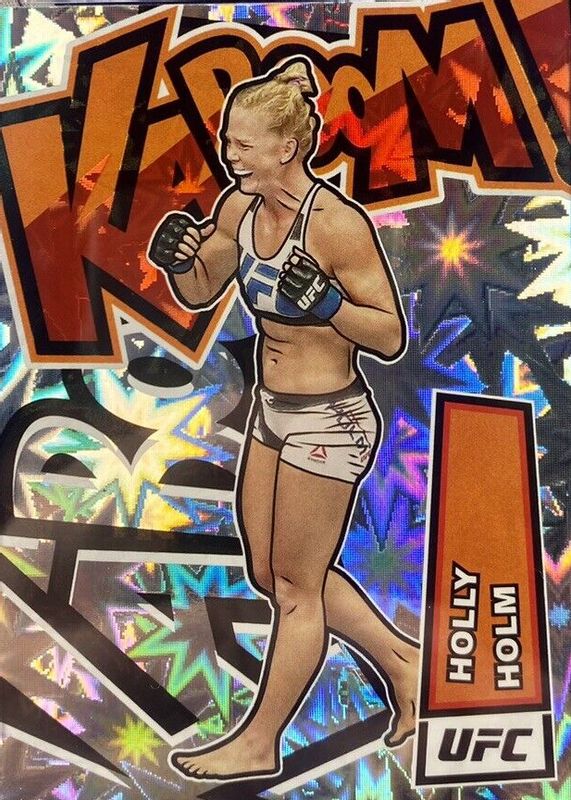 Holly Holm's MMA cards are available in at least 20 sets. Holly Holm's biggest 7-day price movers are 2022 Panini Instant UFC #18 Kaboom! /(SSP), 2021 Select UFC #213 Octagonside Gold /10, and 2021 Select UFC #54 Concourse Red /99.
