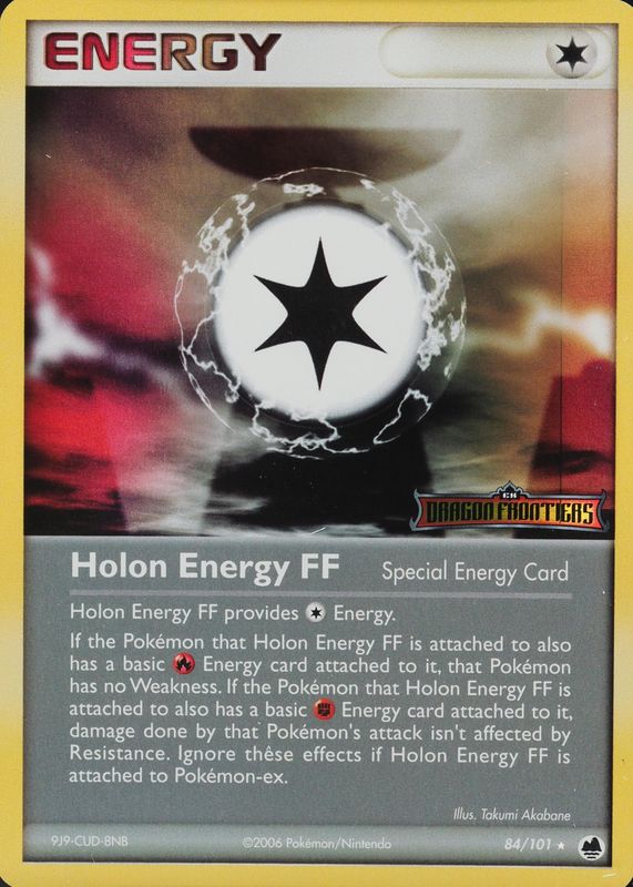 Holon Energy FF's Pokemon cards are available in at least 3 sets. Holon Energy FF's biggest 7-day price movers are 2006 EX: Dragon Frontiers #084/101 Reverse Holo, 2005 EX: Delta Species #104/113 Base, and 2005 Japanese EX: Holon Research Tower #085/086 1st Edition.
